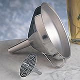 This handy kitchen tool comes with a removable strainer and is ideal for decanting wine and filling narrow jars. Made of 18/8 stainless steel, the funnel comes with a convenient loop for holding and is durably made just like those used in professional kitchens.. Read more